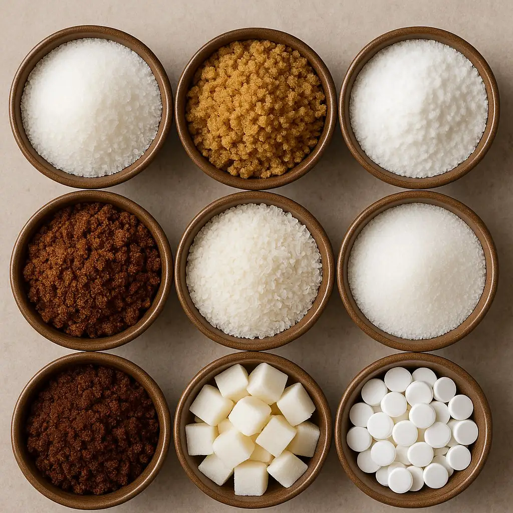 • شکر خام (قهوه‌ای روشن یا تیره) → نیمه‌تصفیه، معمولا برای صنایع خاص یا صادرات.